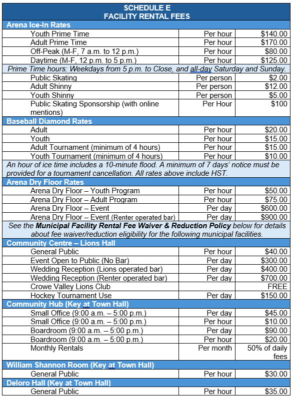 As per 2026-16 USER FEE BYLAW